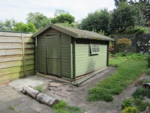 Mark heeft in onze tuin een oude schuur gesloopt. Dit heeft hij snel, veilig en echt super keurig gedaan. Hij heeft zelfs het betonnen fundament waar de schuur op stond helemaal netjes gemaakt door alle oneven betonresten te verwijderen. We kunnen daarom het fundament nu hergebruiken voor een nieuwe schuur.